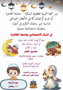 نظّمت كلية التربية للطفولة المبكرة حفل الإفطار الجماعي السنوي من داخل النادي الاجتماعي بجامعة القاهرة في أجواء رمضانية مميزة، بحضور قيادات الكلية وأعضاء هيئة التدريس والهيئة المعاونة والطلاب والعاملين، وذلك في إطار حرص الكلية على تعزيز روح الألفة والتواصل بين جميع منتسبيها. جاءت فعاليات الإفطار وسط أجواء يسودها الود والتعاون، حيث تبادل الحضور التهاني بمناسبة […]