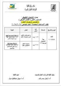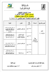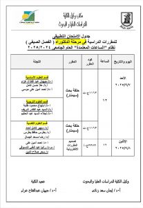 جدول الامتحانات التطبيقية للدراسات العليا