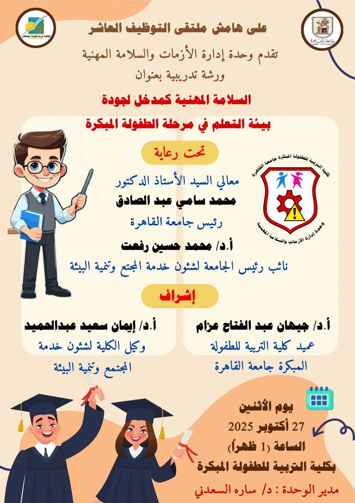 الاعلان عن ورشة تدريبية “السلامة المهنية كمدخل لجودة بيئة التعلم في مرحلة الطفولة By AdminKind | 21 أكتوبر، 2025 | لا توجد تعليقات غير مصنف