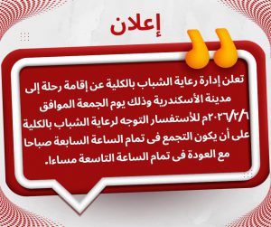 نتيجة الفصل الدراسى الأول للعام الجامعى ٢٠٢٥-٢٠٢٦ →