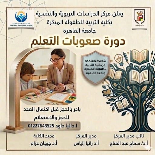 • يعلن مركز الدراسات التربوية والنفسية بالكلية عن بدء الدورة التدريبية “صعوبات التعلم”